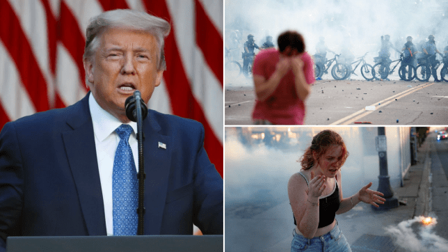 US President, Donald Trump has reacted to the US National Guard using tear gas to disperse Black Lives Matter protesters in Minnesota . Trump described the use of teargas on protesters who took to the streets in response to the killing of George Floyd, a black American who died last month when a white Police officer Derek Chauvin kneeled on his neck in Minneapolis, as a ‘beautiful scene.’ . Speaking at an event in Dallas, Texas, the president shared his views on efforts made by the Minnesota National Guard to restore order.